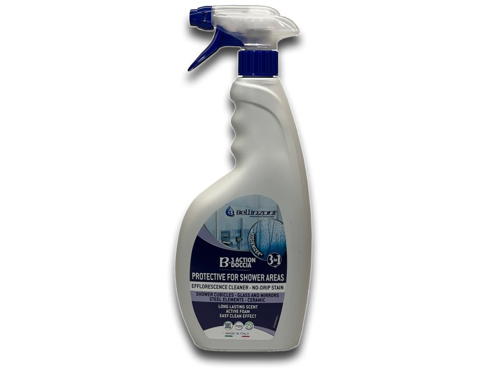 Výborný odstraňovač vodního kamene, důkladně čistí a pravidelné používání oddaluje jeho tvorbu. Aplikován na sprchový kout poskytuje vlastnosti proti pádu. Důkladně dezinfikujte. Je také určen k čištění a ochraně vodovodních baterií a prvků z oceli, plexiskla a keramiky. Účinně odstraňuje zbytky nebo mýdlové kroužky.