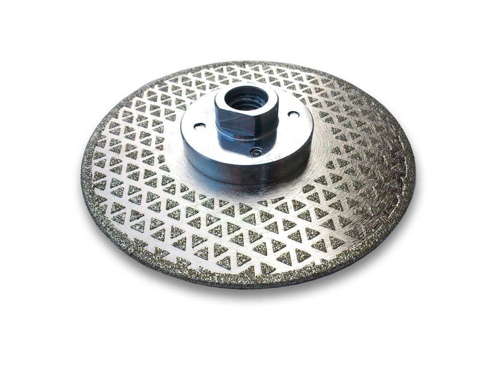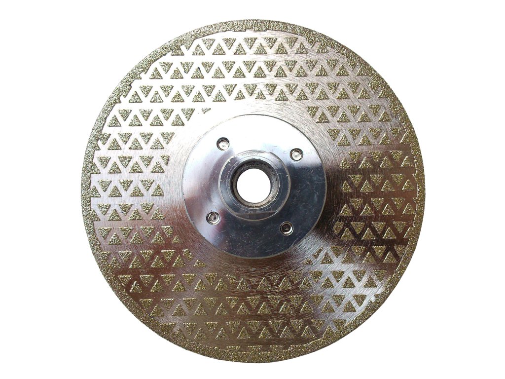 Galvanicky nanášen syntetický diamant je nanesen na obou pracovních plochách i po obvodu nástroje. To umožňuje brousit nebo řezat do materiálů: