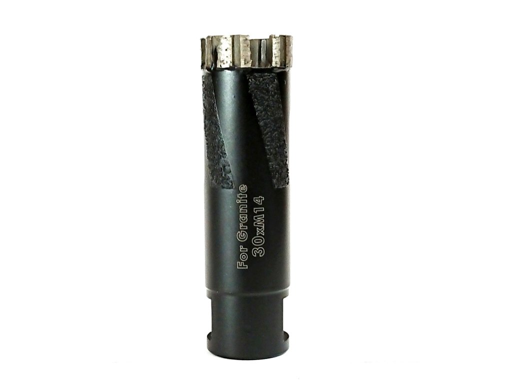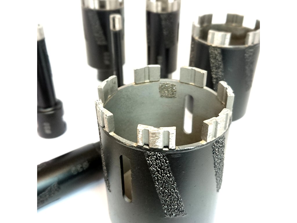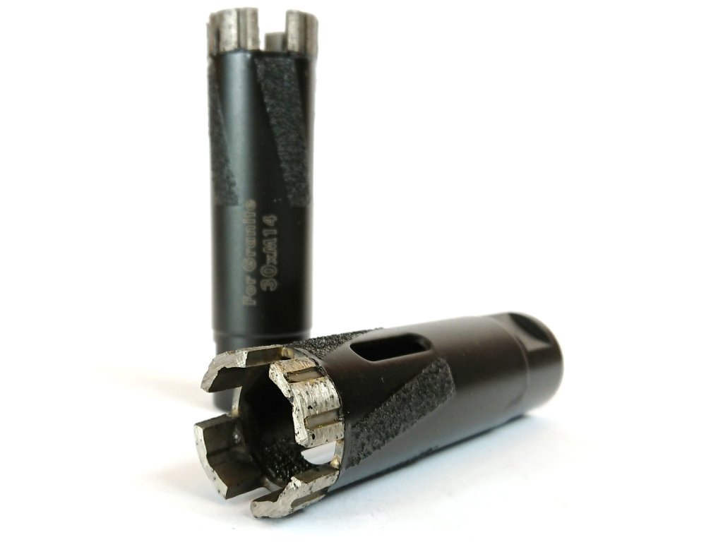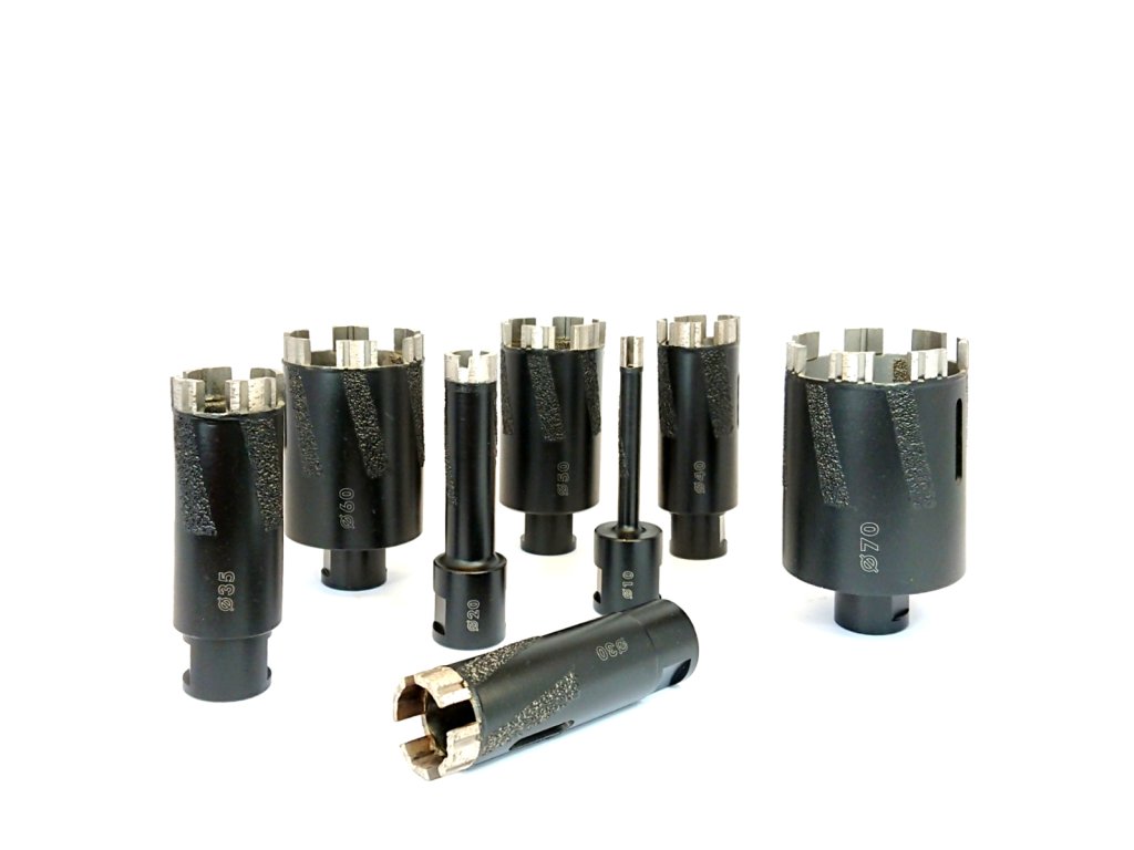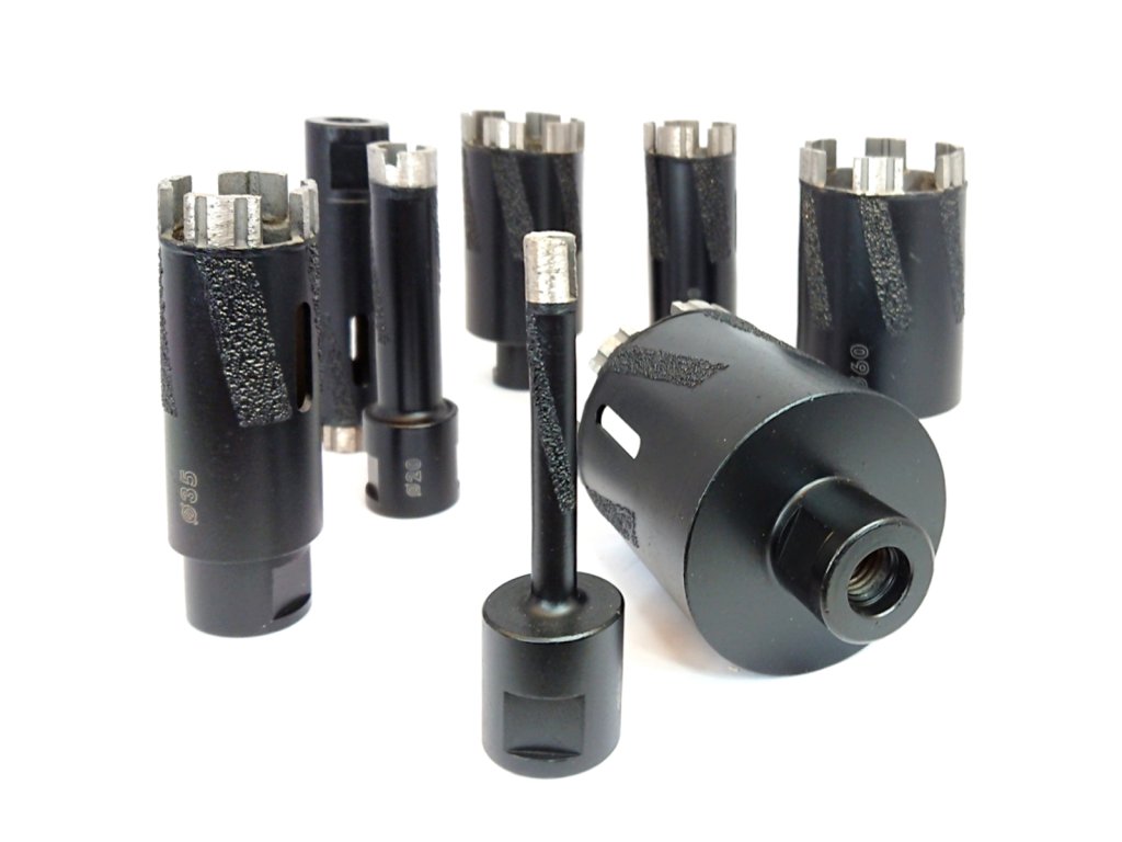 Diamantový vrták určený pro práci za sucha má po obvodu těla nanesený syntetický diamant, díky čemuž slouží nejen jako vrták do kamene ale i jako brusný válec.