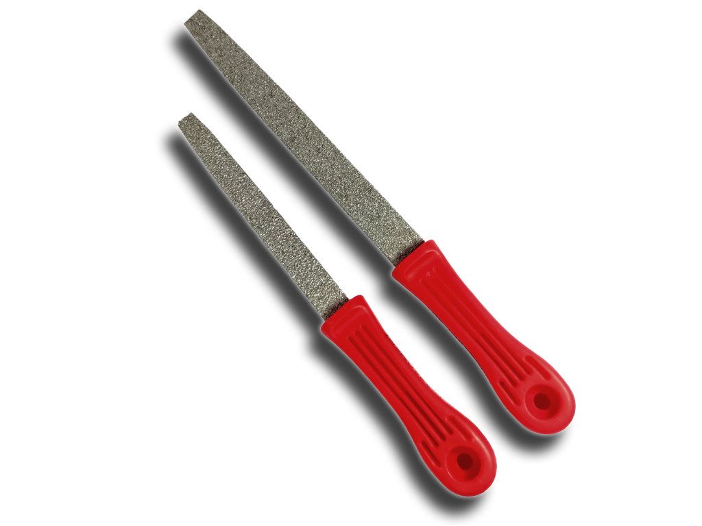 Diamantový pilník plochý, s pracovní diamantovou vrstvou na celé ploše pracovní části.
