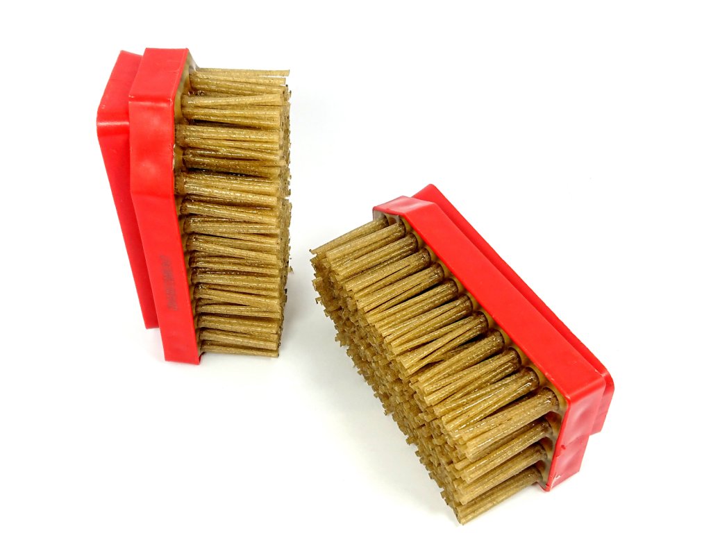 Diamantový kartáč vhodný na povrchovou úpravu kamene se, starobylým - antickým efektem. Nejtlustší zrnitost vlasu (# 24) vybírá měkkou složku v kameni, čehož výsledkem je nerovný reliéfní povrch. Následujícími zrnitostmi (# 36 a # 60) zahladite a jemně dotvarujete matný povrch. Použitím následujících zrnitostí docílíte na satinováném povrchu pololesklý až lesklý povrch (podle druhu materiálu).