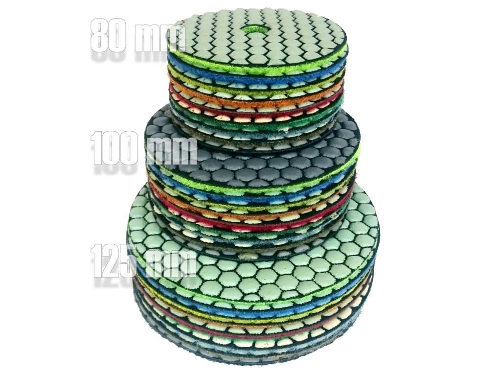průměr 80 mm: Pro malé ruční brusky, vhodné pro leštění malých ploch, koutů, rádiusů a zápichů. Opracujete místa, kam se nedostanete s větším průměrem. Vhodné i pro detailní kamenosochářské práce