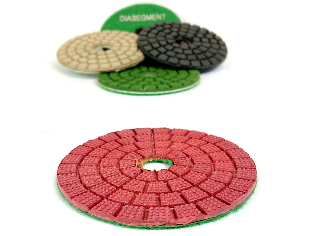 Následuje #BUFF, se kterým začínáte pracovat na mokrém kameni, ale bez přívodu vody ze stroje. Zbylá voda uvolní leštící směs z kotouče na leštěnou plochu. Tu odstraňujeme rotací kotouče a zároveň zahříváme plochu kamene prací na sucho. Při této teplotě vzniká na povrchu kamene sklovina, která dokonale uzavírá plochu materiálu.