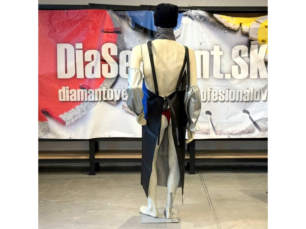 Hrubá, na hrudi zdvojená kamenická zástěra z hrubé koženky.