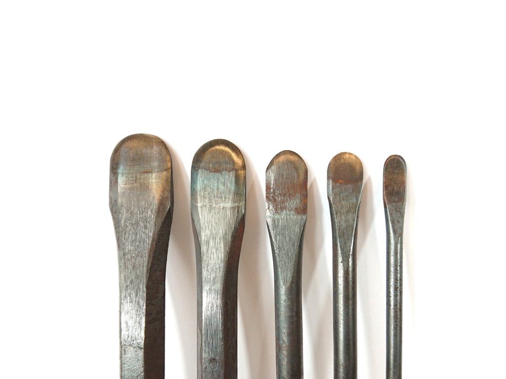 Kované kamenické dláta, kalené na měkké pískovce, vápence a opuku.