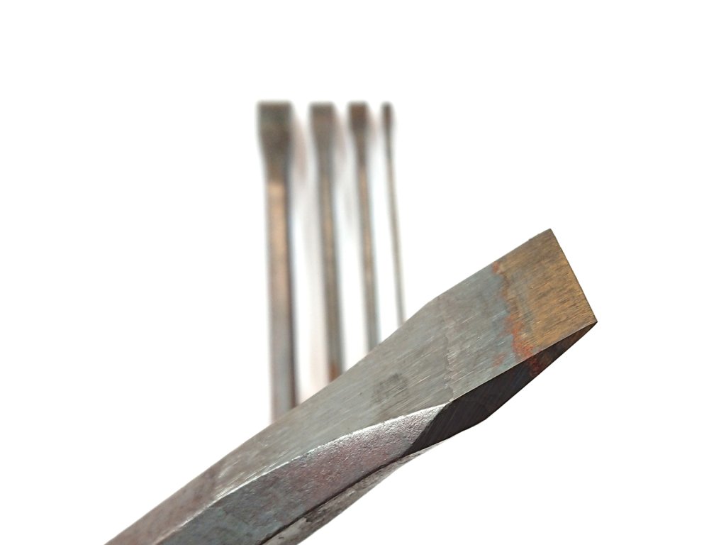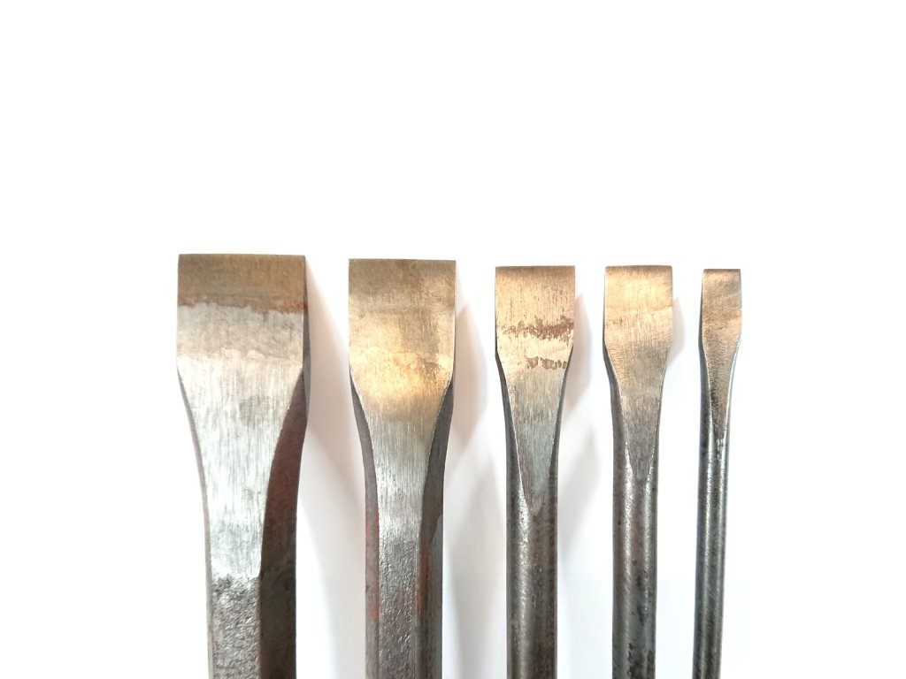 Kované kamenické dláta, kalené na měkké pískovce, vápence a opuku.