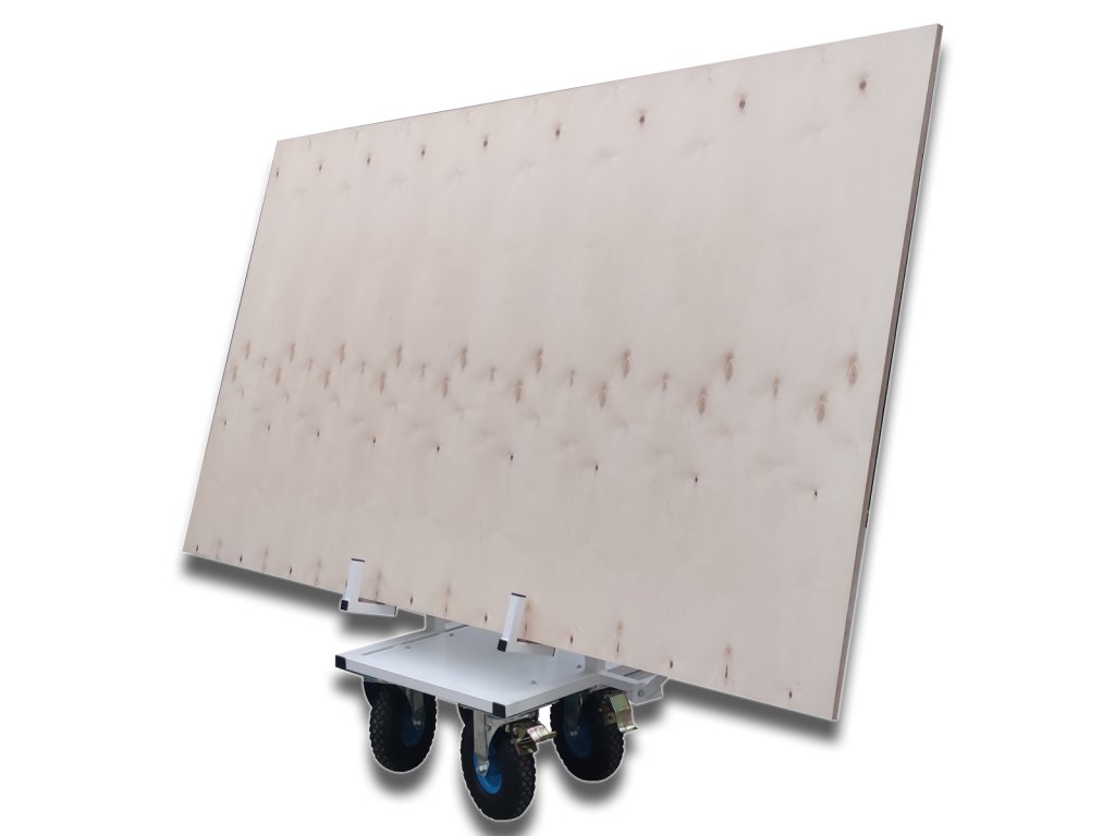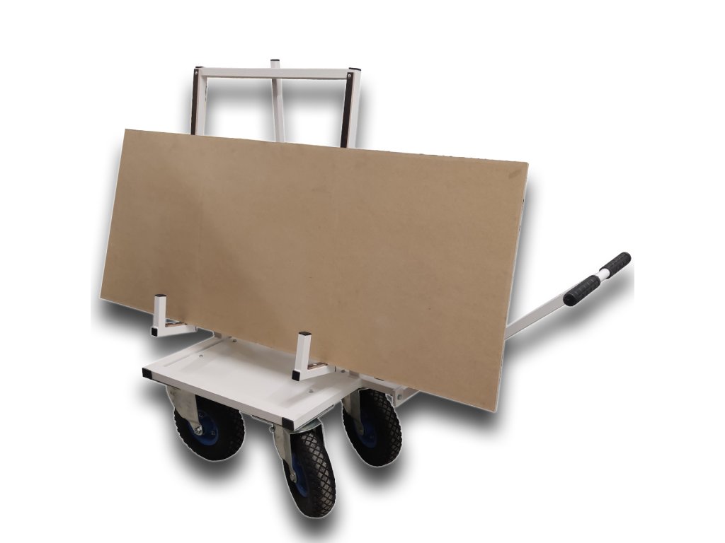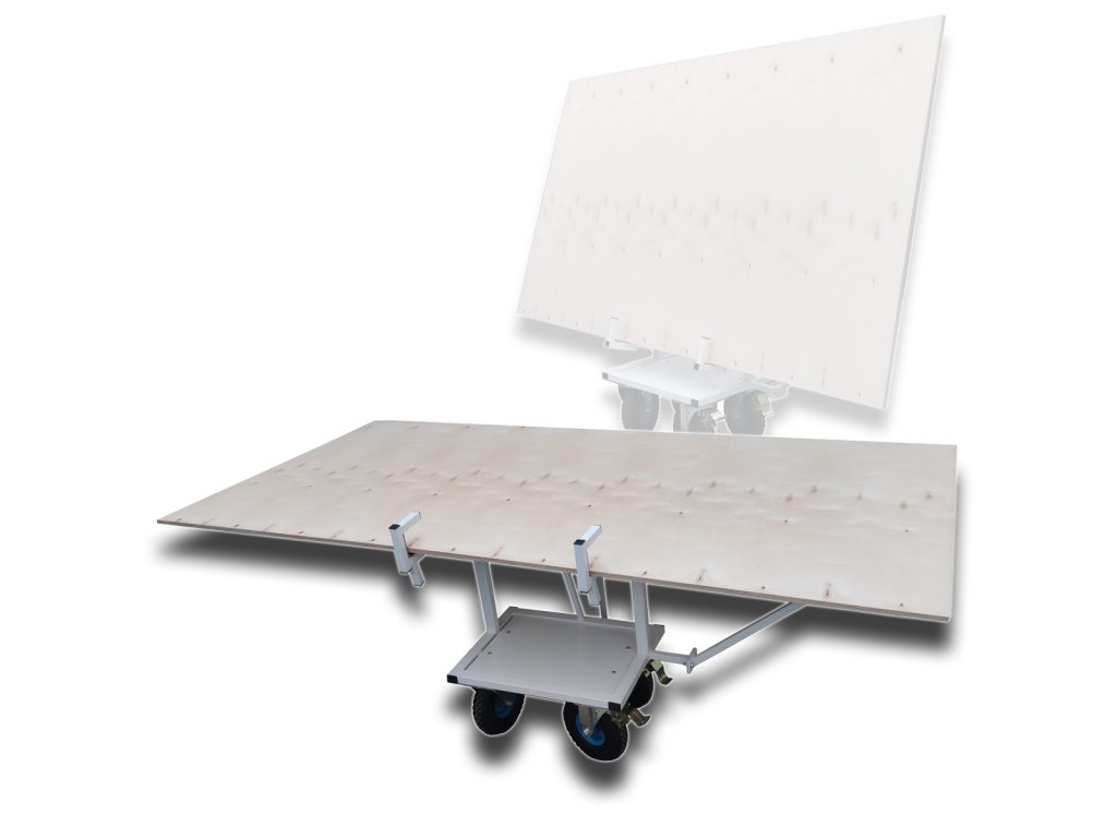 Sklopný transportní vozík stavěn na manipulaci s doskovinou.