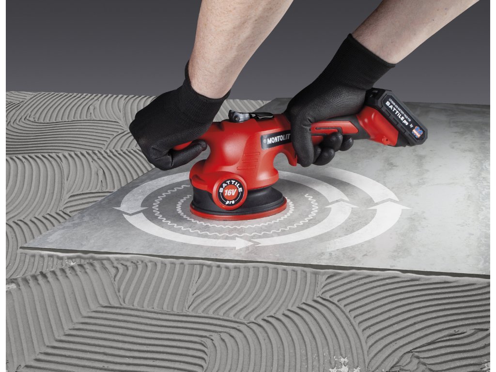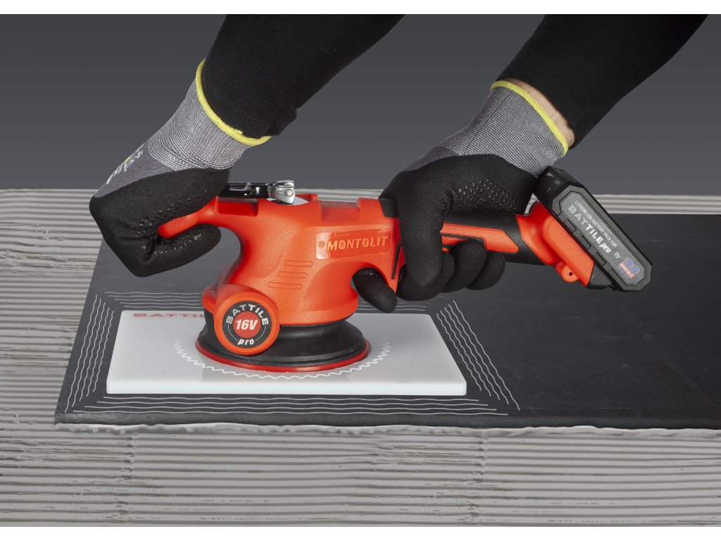 BATTILE PRO vytváří vibrace, které je možné podle potřeby regulovat. Vibrace se přenášejí na dlaždici položenou v lepidle a chvěním dlaždice dochází k vytlačování vzduchových bublin a následně k dokonalému přilnutí dlaždice k lepidlu.