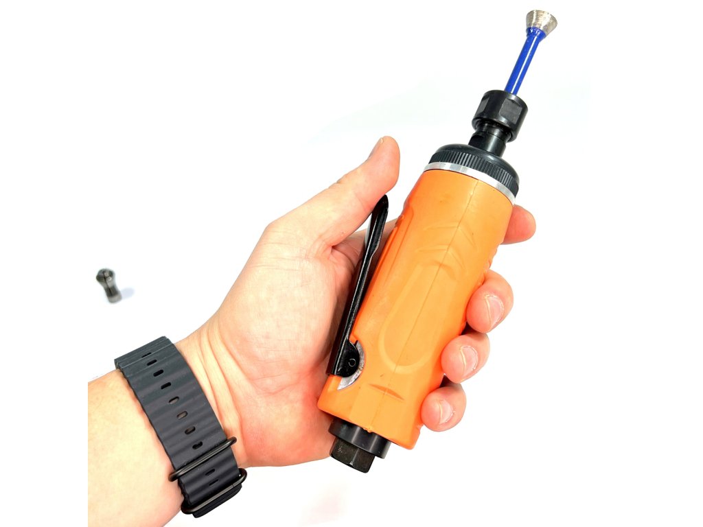 Pneumatická přímá bruska vhodná pro kamenické a sochařské práce.