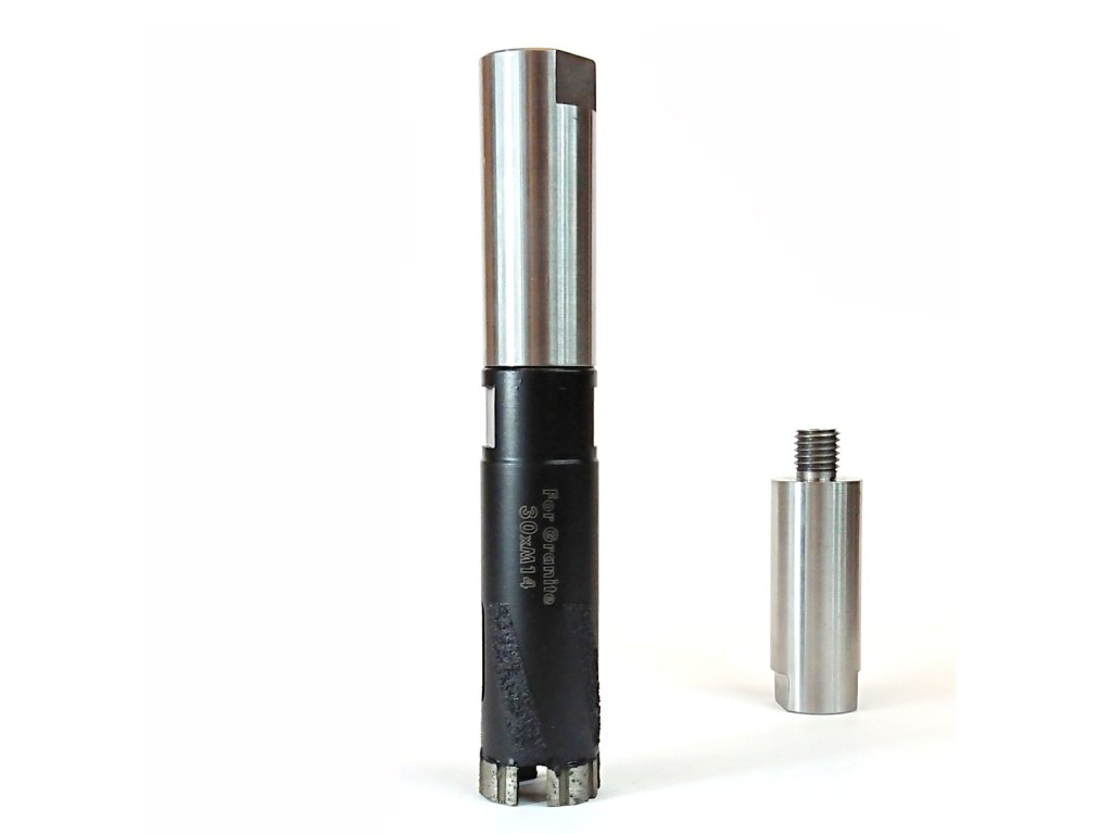 Nástroj, pomocí kterého se dostanete hlouběji do materiálu. Hřídel se závitem M14 (běžné úhlové brusky) na obou koncích, se středovou dírou na přívod vody