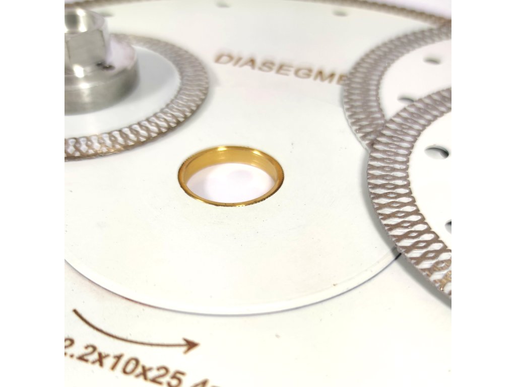 Průměr 200, 230, 250 mm - 25,4 + 22,23 mm, řezný kotouč má mosazný redukční kroužek (řezačka, malá stolová pila - viz detail na foto)