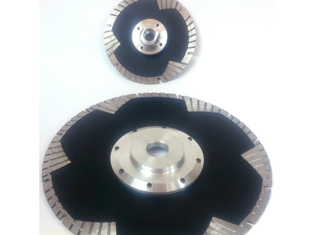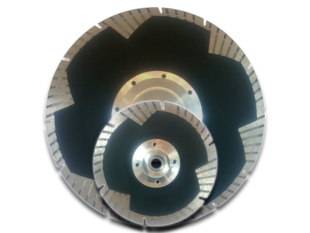 Diamantový řezný + brusný kotouč určený pro práci za sucha. Boční diamantové zuby jsou vhodné pro broušení / tvarování kamene. Duralová příruba umožňuje pracovat s celou plochou kotouče - nevyčnívá závit ze stroje. V nabídce průměr 115 a 230 mm.