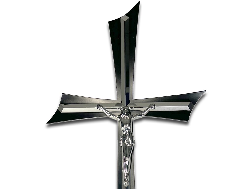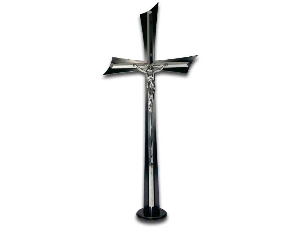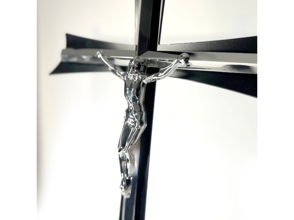 70 cm vysoký, dominantní kříž z nerezavějící oceli s umučením Ježíše Krista.