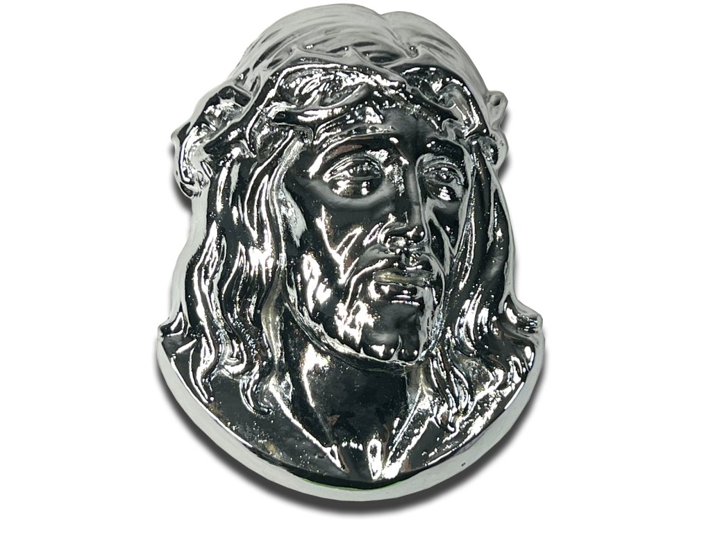 Tvář Ježíše v provedení stříbrná barva (chrom).