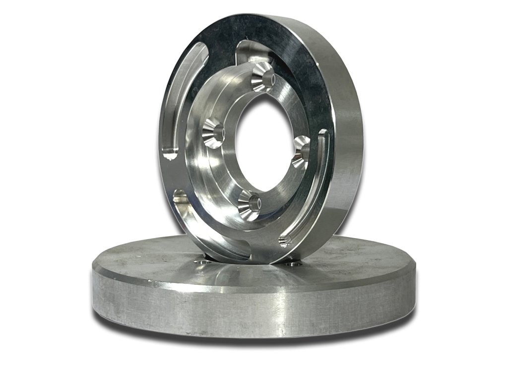 Detailně zpracovaný výrobek z jednoho kusu materiálu (dural).