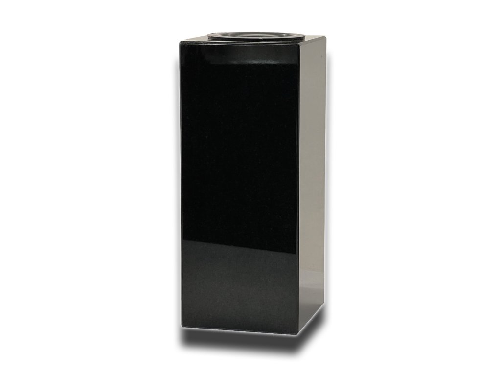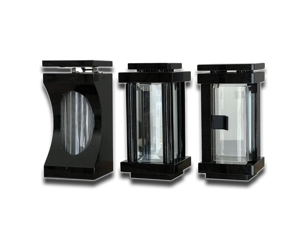 Masivní kamenná váza vhodná jako doplněk k lucernám s hranatým designem.