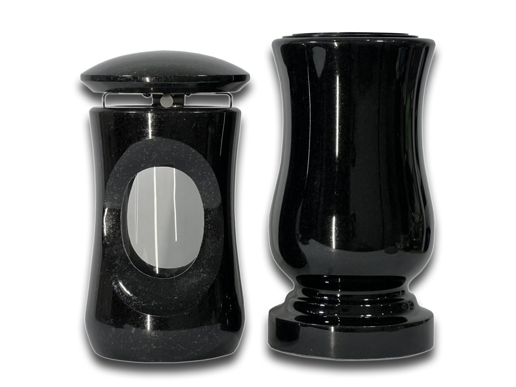 Masivní žulová lucerna vhodná jako elegantní doplněk k výjimečným hřbitovním stavbám.