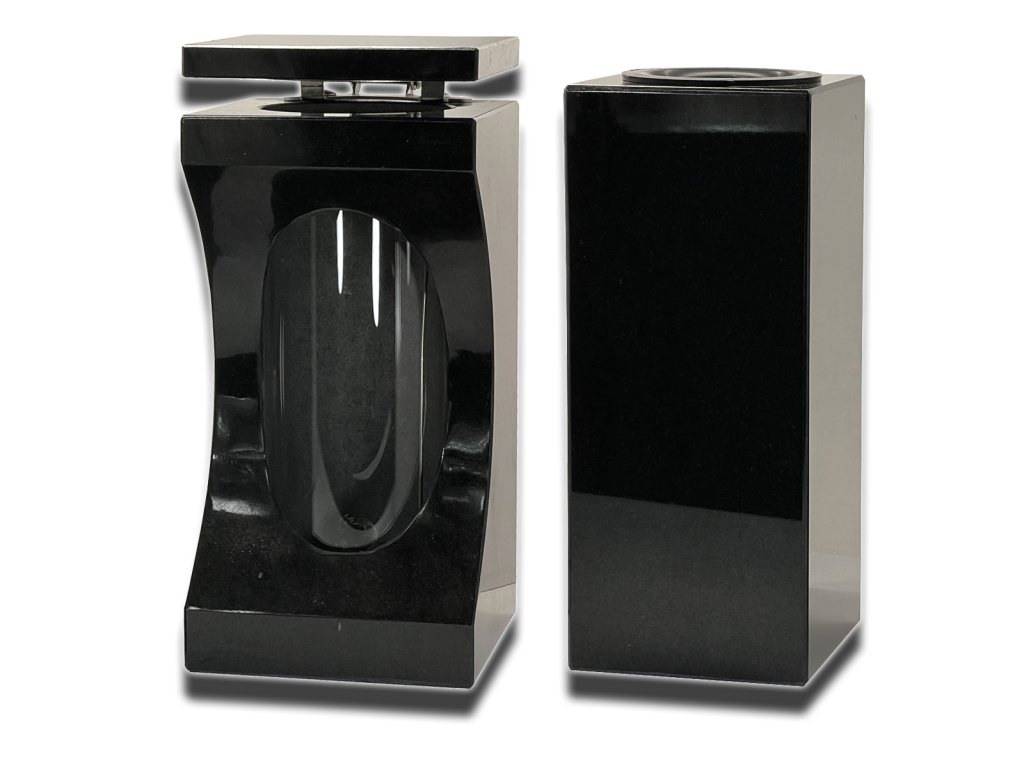 Hranatá žulová lucerna s designem vhodným k jednoduchým i tvarově složitějším hrobům